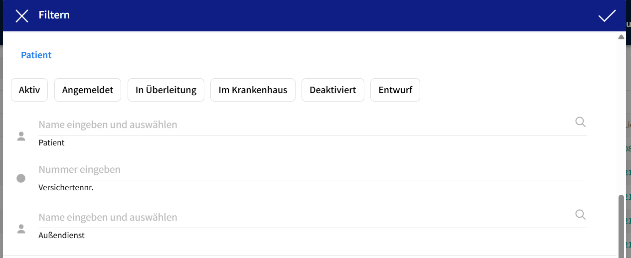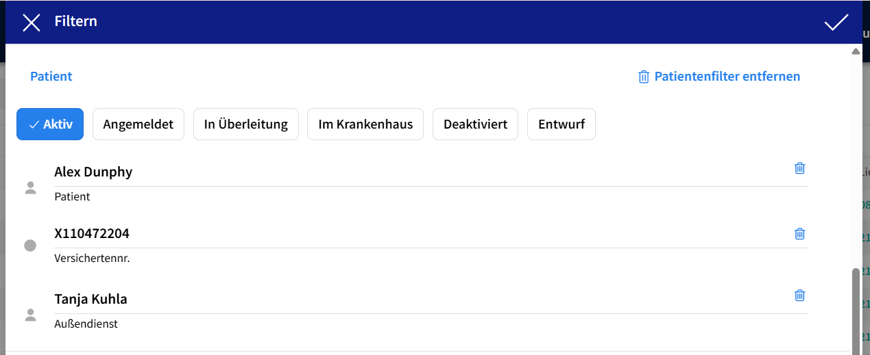 - Versichertennummer: die Liste kann anhand der Versichertennummer des Patienten durchsucht werden.