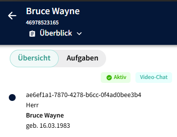 - Dieses weißt daraufhin, dass der Patient dem Video-Chat zugestimmt hat. Wir haben dieses Label überarbeitet.