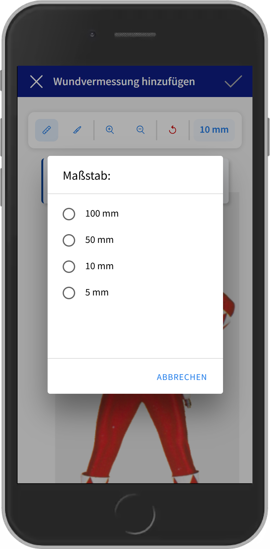 - Der Maßstab der Wundvermessung in Alberta war bisher immer auf 100 mm eingestellt.