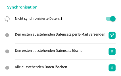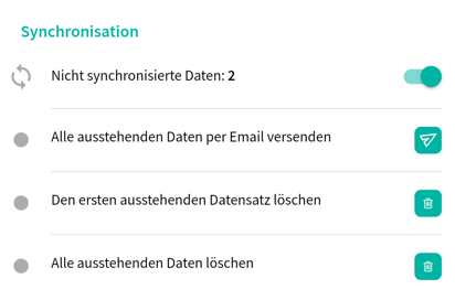 - Teilweise funktionierte das Versenden aller nicht synchronisierten Daten per E-Mail nicht zuverlässig, da der Anhang, der generiert wurde, zu groß war und nicht korrekt erstellt/verschickt werden konnte.
