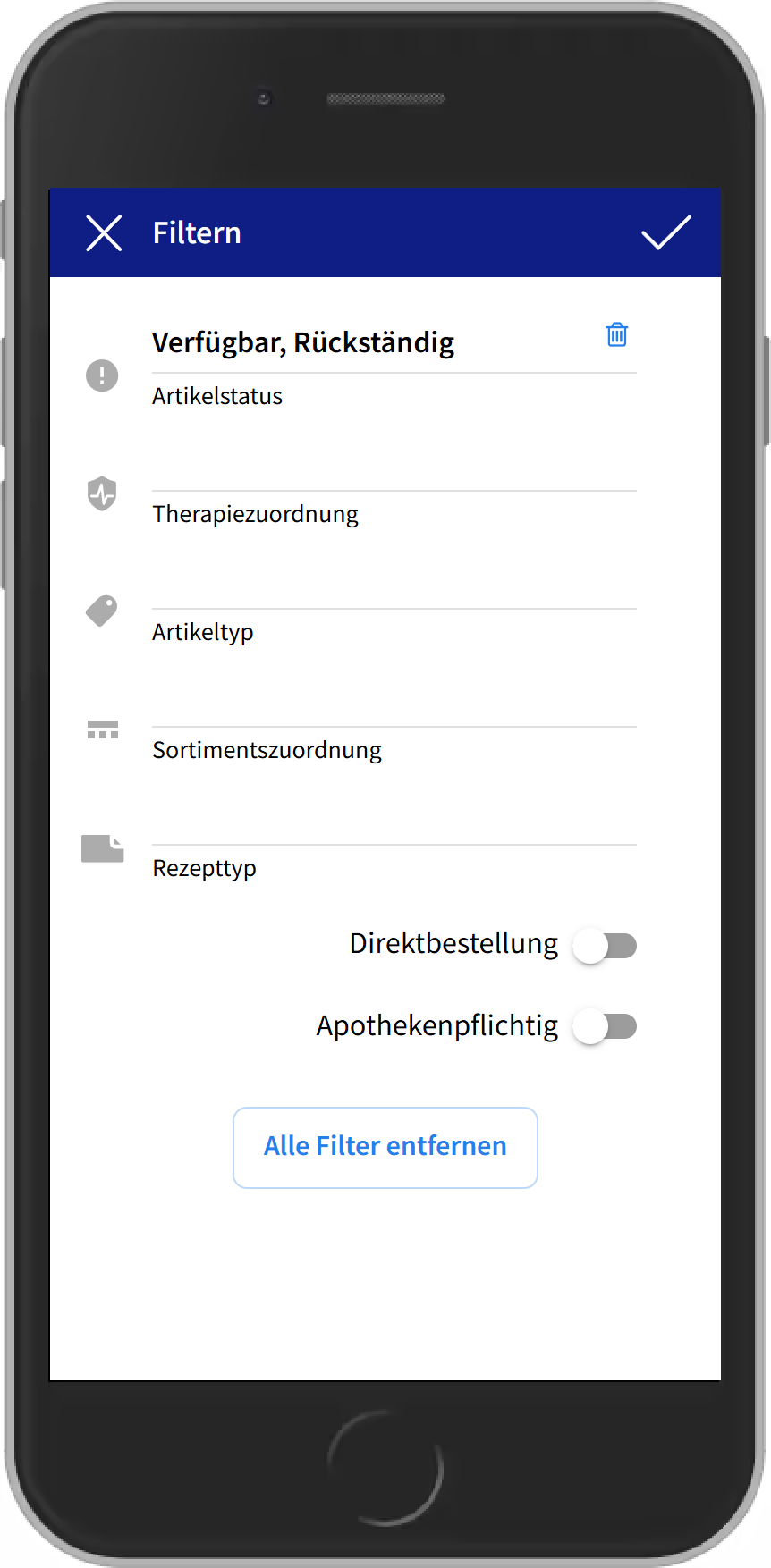 - Therapiezuordnung (bitte beachten: da die Therapiezuordnung keine Pflichtangabe darstellt, kann es sein, dass bei manchen Kunden hier keine Ergebnisse angezeigt werden können, da diese nicht am Artikel hinterlegt ist)
