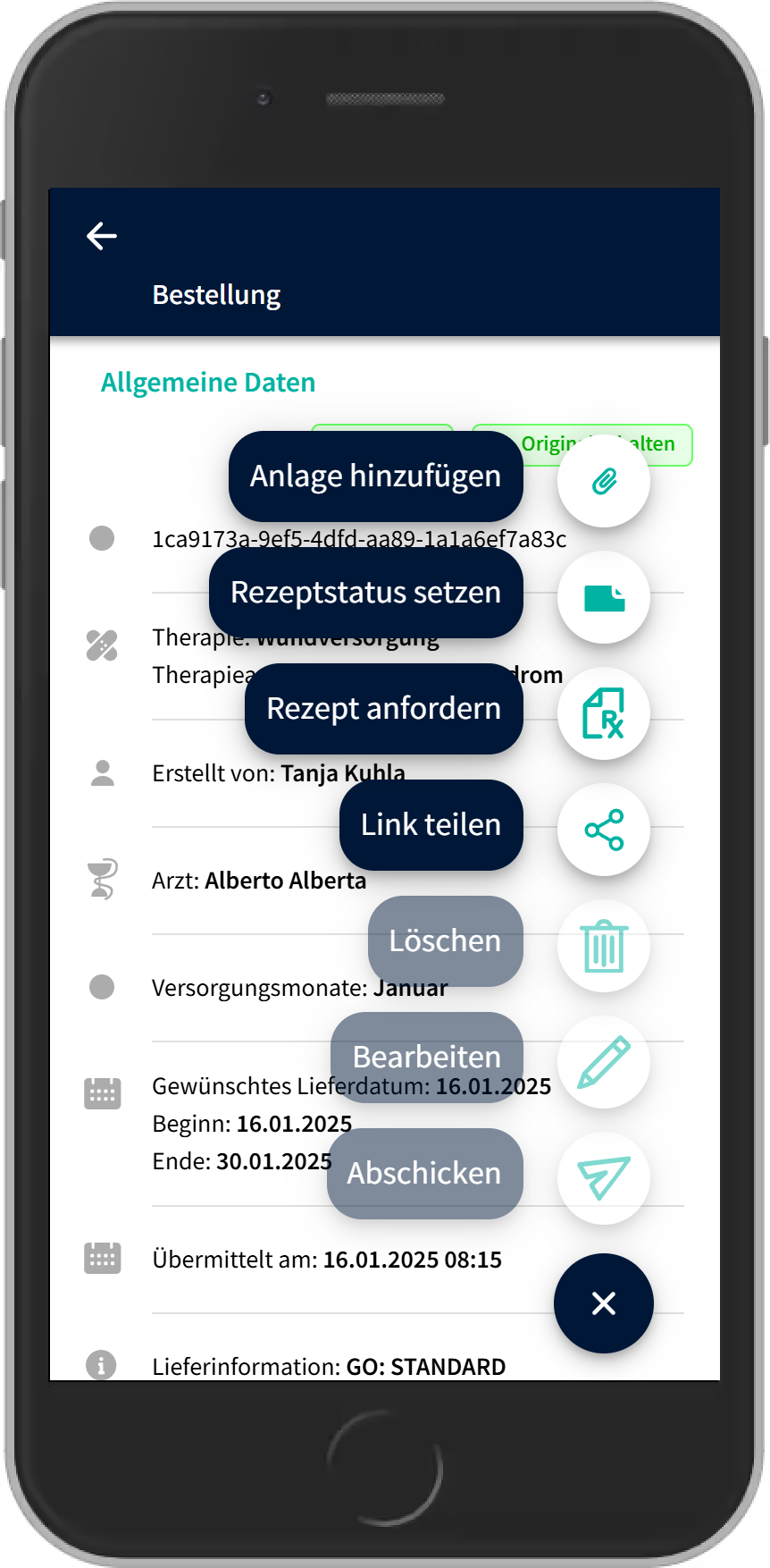 - Der Versorgungszeitraum wird aus der Bestellung übernommen auf die Rezeptanforderung aufgedruckt.