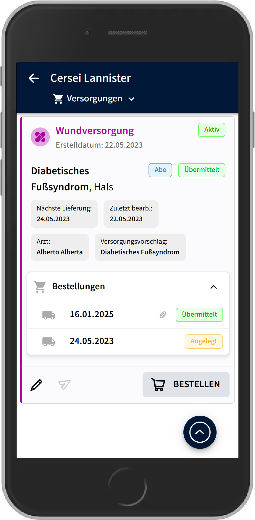- In der Detailansicht einer Versorgung (Anzeige Aboartikel)