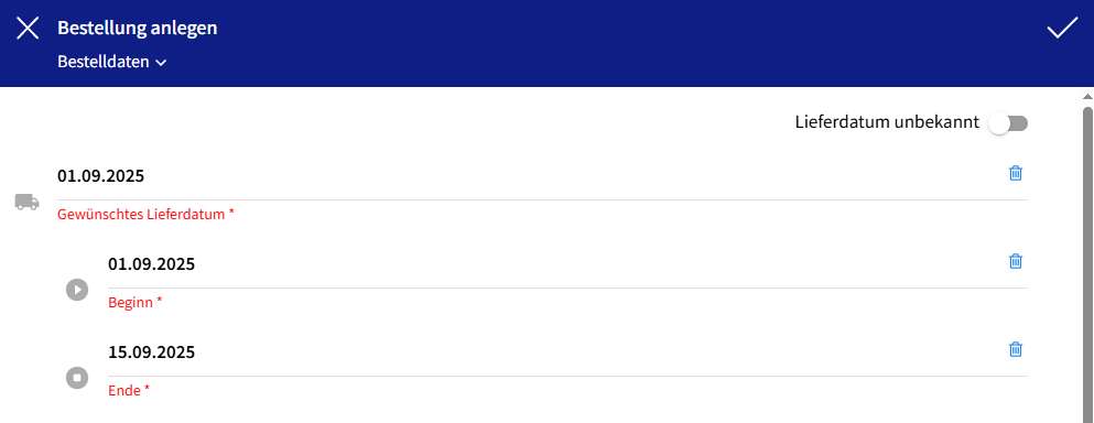 - Wird daraus eine Bestellung erstellt, wird ein therapiespezifischer (also pro Therapie unterschiedlicher) Versorgungszeitraum definiert.