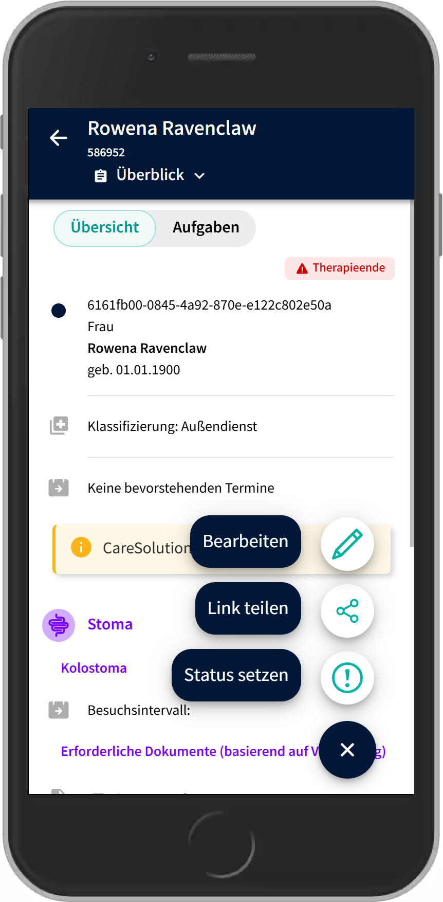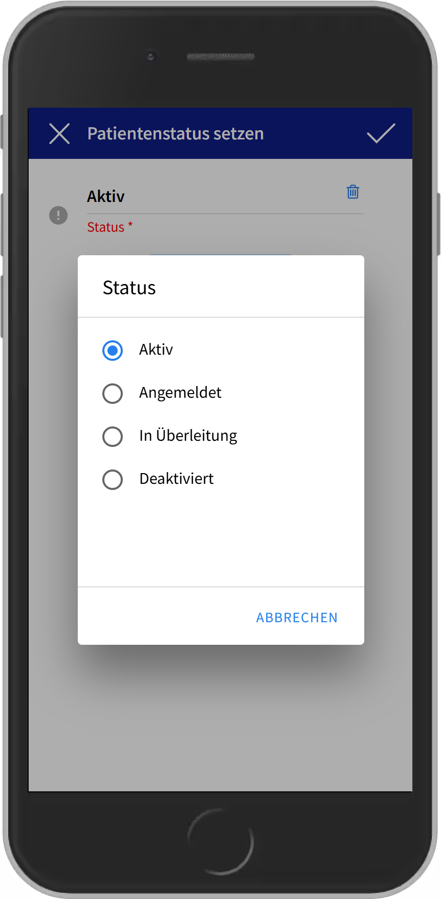 • Dafür einfach den Patientenüberblick öffnen und die Aktion "Status setzen" auswählen.
