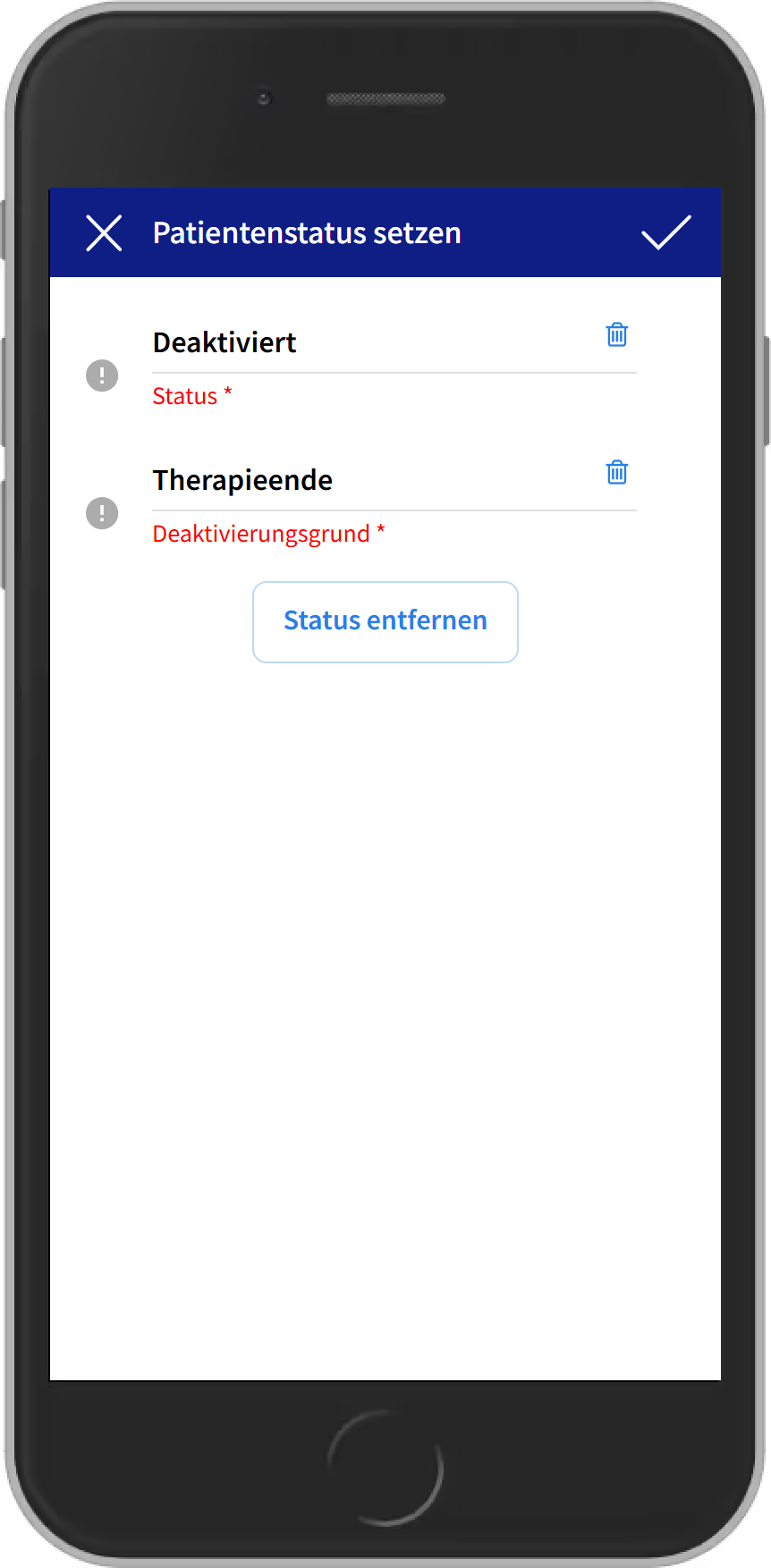 Wie entferne ich beim Patienten den Status "Deaktiviert"?
