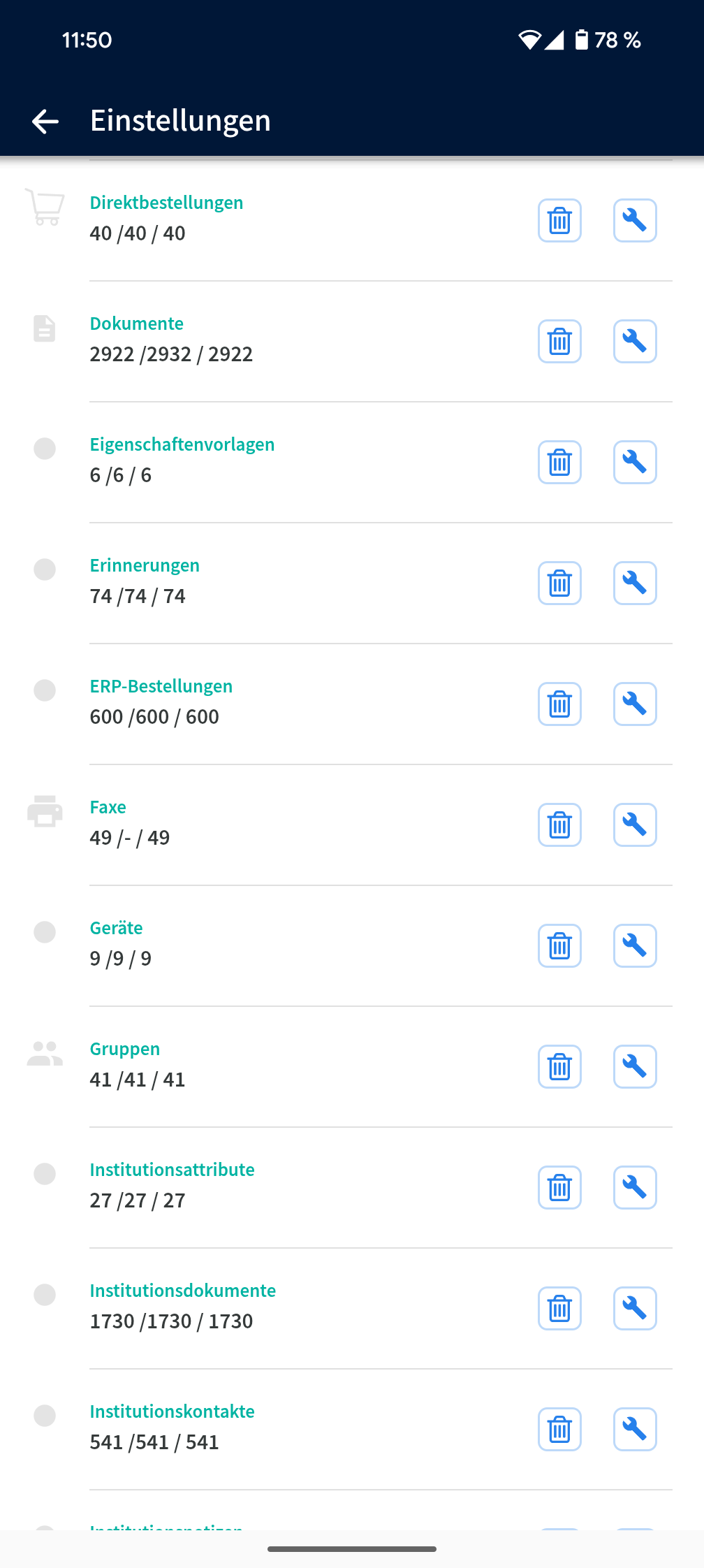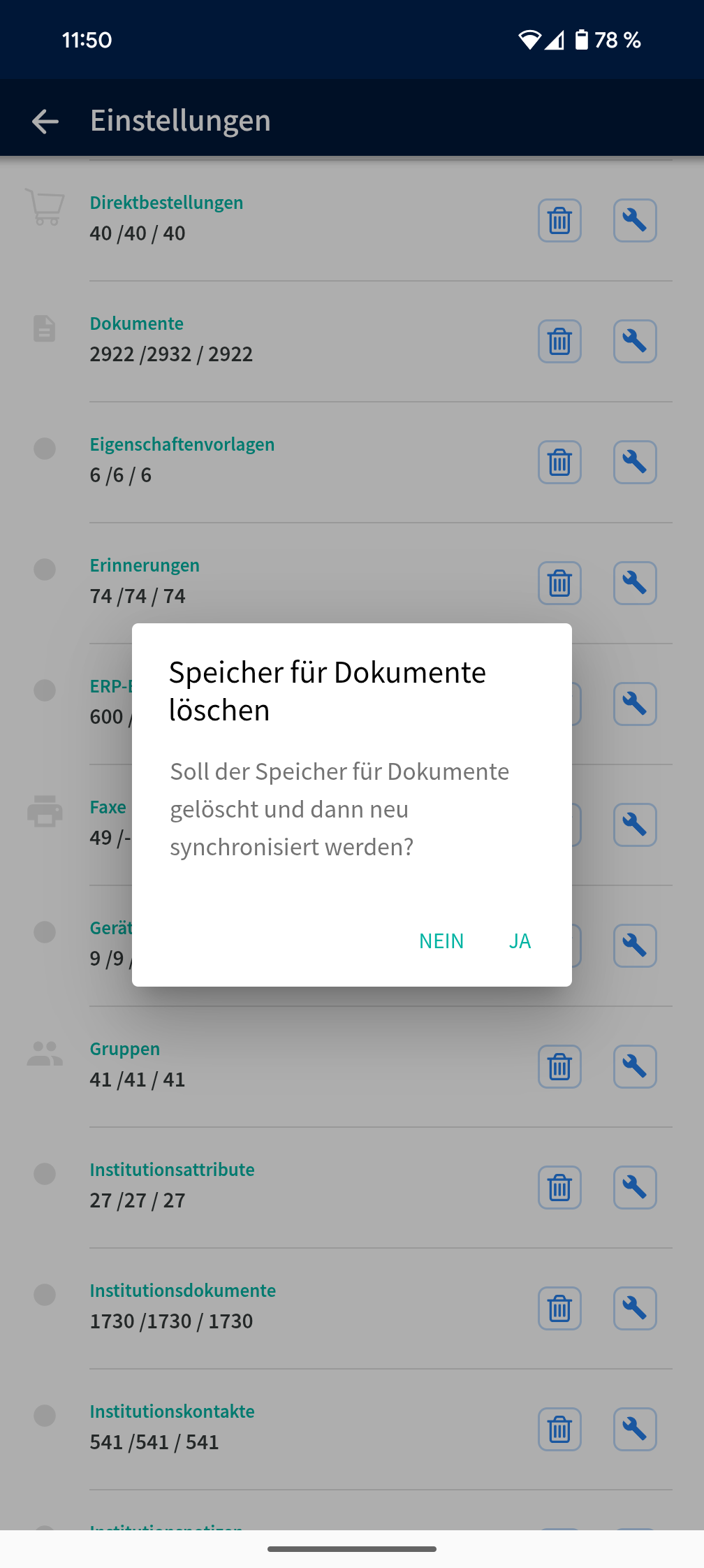 Normalerweise sollten diese Datensätze identisch sein - wenn sie es nicht sind, stoßen wir nun einmal die neu Synchronisation an, indem wir die Datensätze löschen