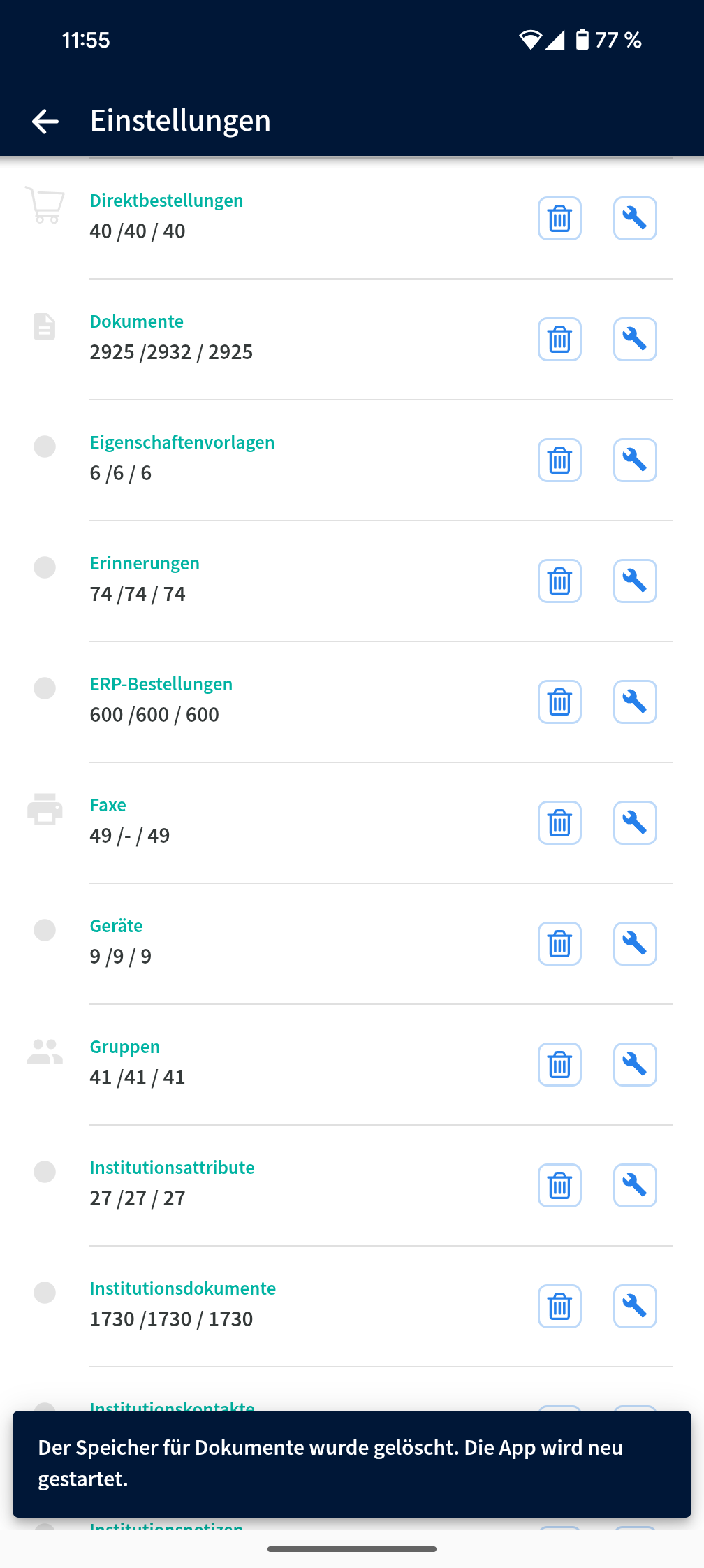 Nach Abschluss der Reparatur und dem Neustart der App sollten die Dokumente wieder vollständig angezeigt werden.