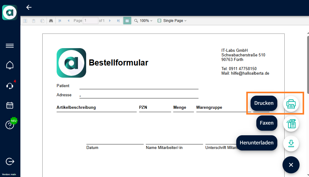 • In der Web-Version von Alberta ist es nun möglich, Rezept- und Verordnungsanforderungen direkt zu drucken.