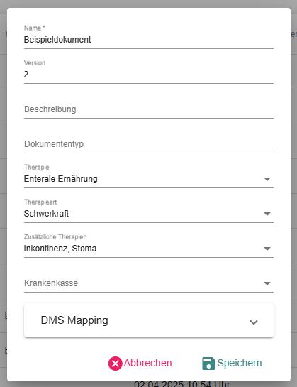 - Bisher war eine Dokumentenvorlage entweder nicht therapiebezogen oder konnte nur einer Therapie/Therapieart zugeordnet werden.