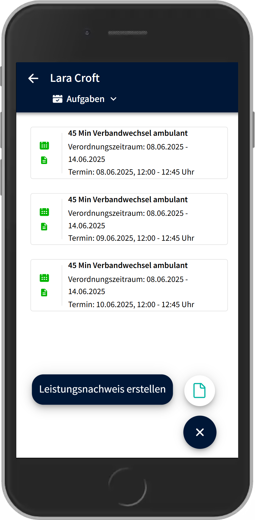 - Aufgaben können nur noch für aktive Versorgungen erstellt werden, andernfalls erscheint eine Fehlermeldung.