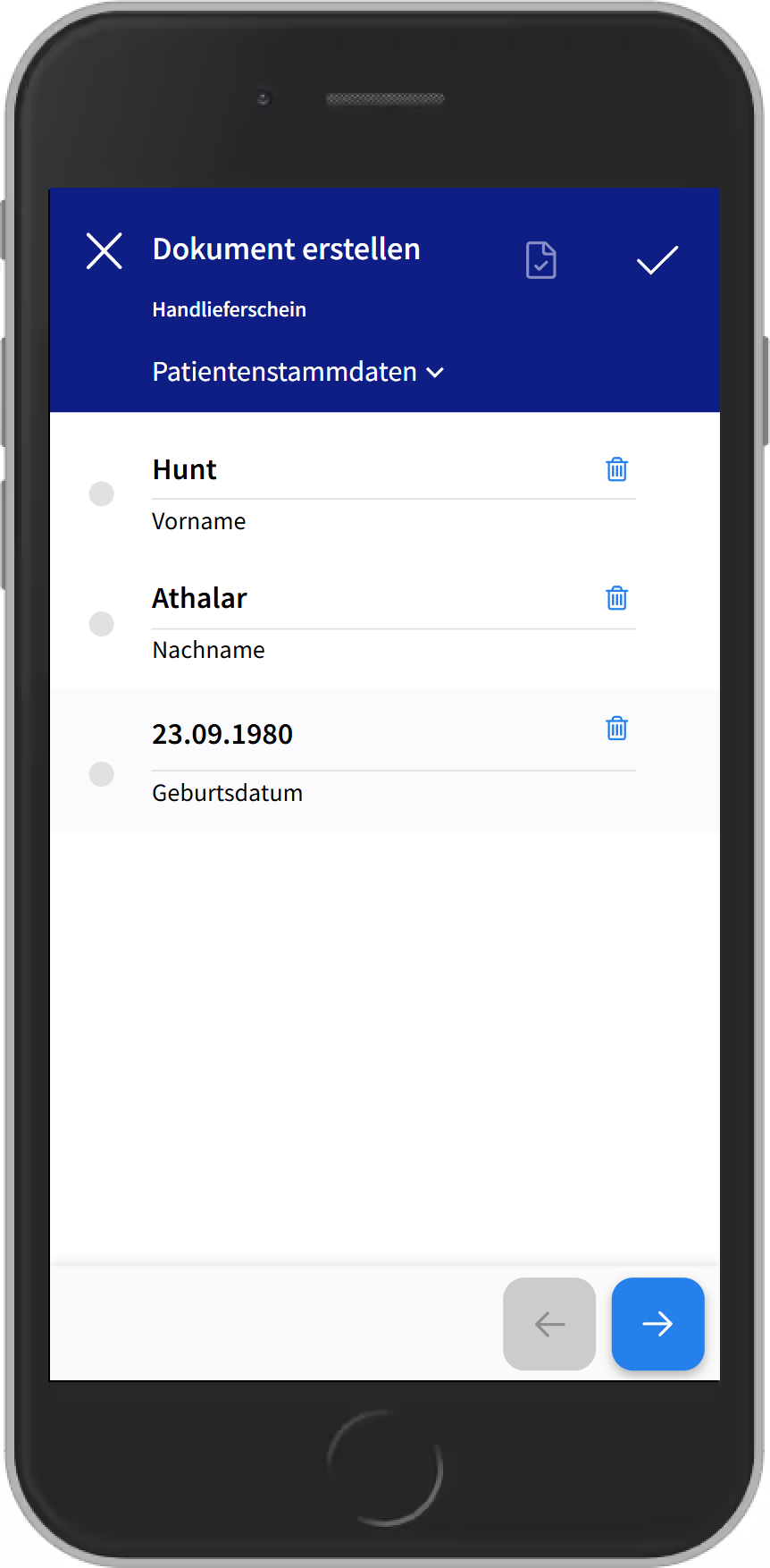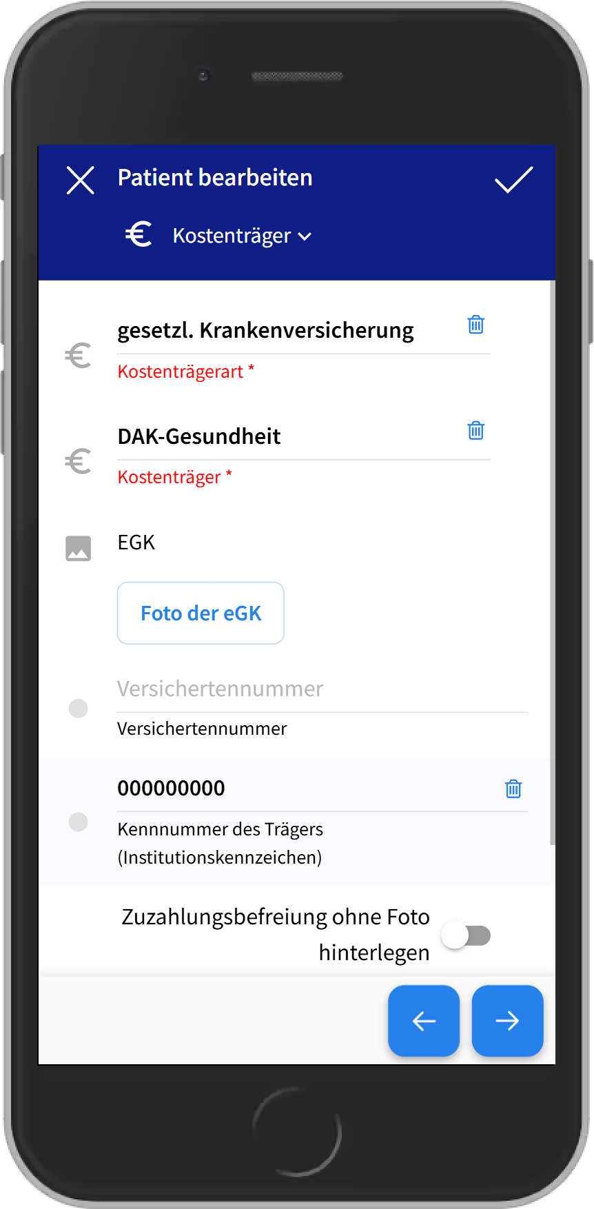 - Über den Hinweis können direkt die Stammdaten des Patienten bearbeitet werden können.