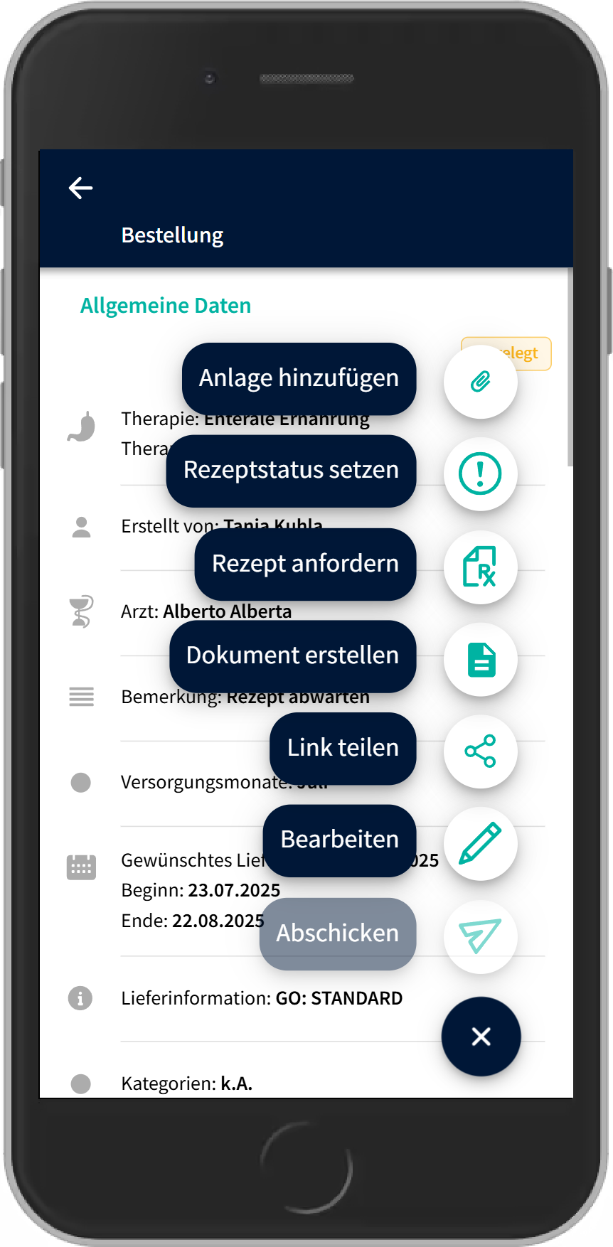 - Bei Rezept- und Verordnungsanforderungen werden die auszufüllenden Felder nun vorbefüllt, sollte für die Versorgung bereits einmal eine Anforderung ausgefüllt worden sein. So müssen diese Werte nicht jedes Mal neu eingegeben werden.