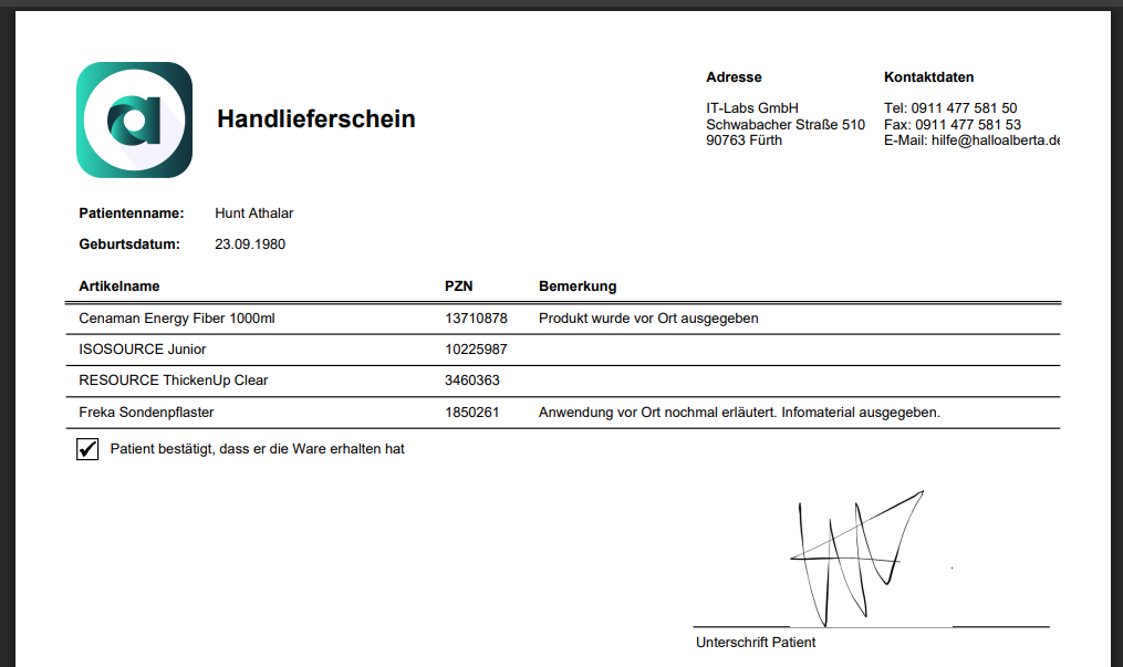 Ein Beispiel für einen Handlieferschein könnte folgendermaßen aussehen:
