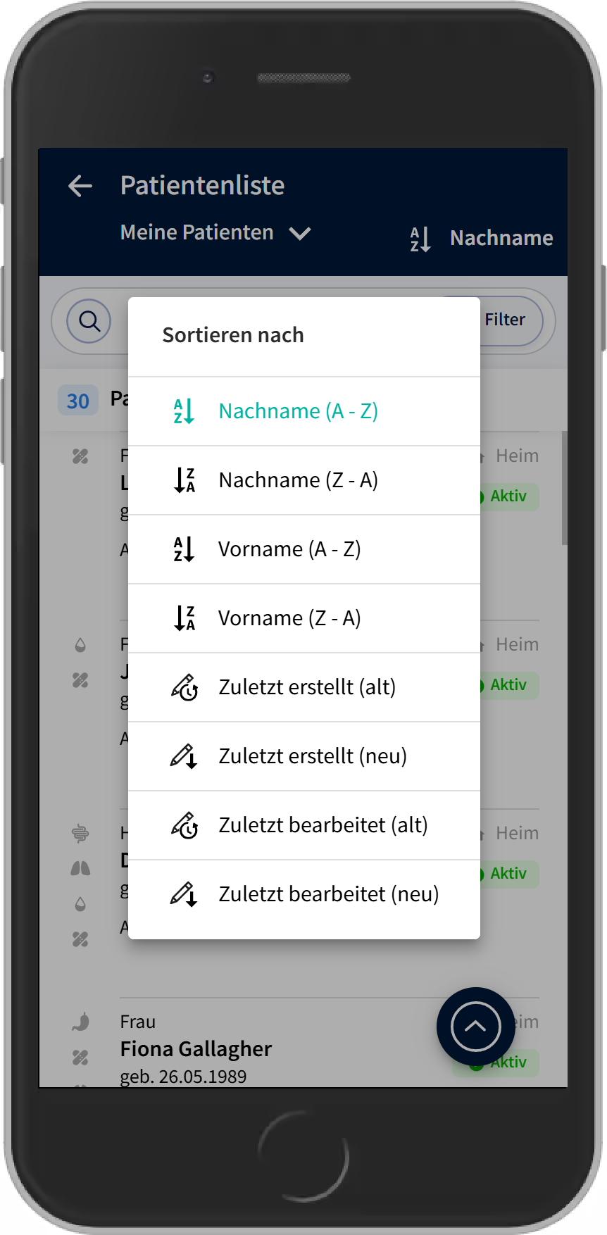 - Die Patientenliste in Alberta kann jetzt nach verschiedenen Kriterien sortiert werden.