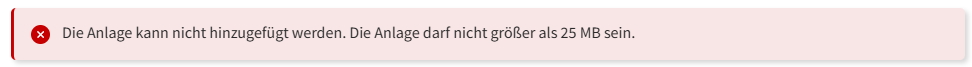 - Wir haben das Limit erweitert, es sind jetzt auch Anlagen bis zu 25 MB möglich.