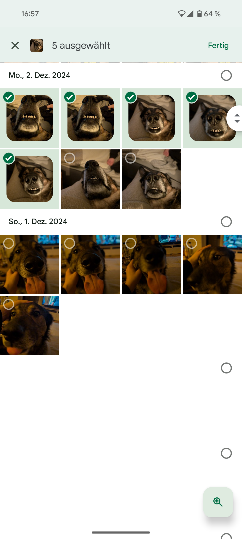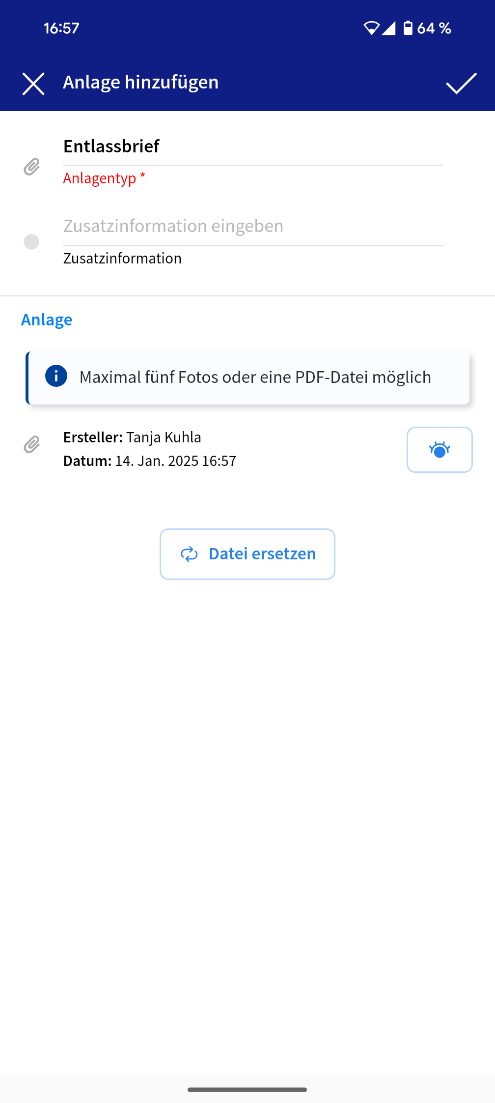 - Nach der Auswahl der Bilder (hier am Beispiel einer Fotobibliothek auf einem Smartphone), kann die Anlage in einer Vorschau angezeigt und auch ersetzt werden: