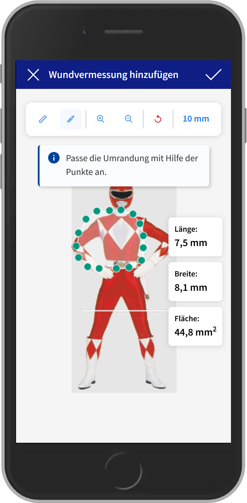 - Der Maßstab der Wundvermessung in Alberta war bisher immer auf 100 mm eingestellt.
