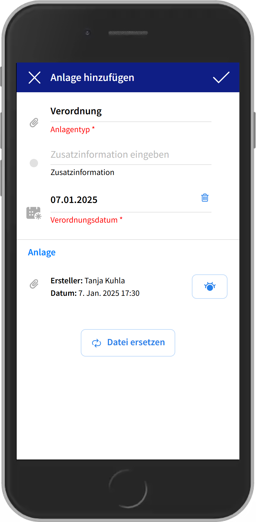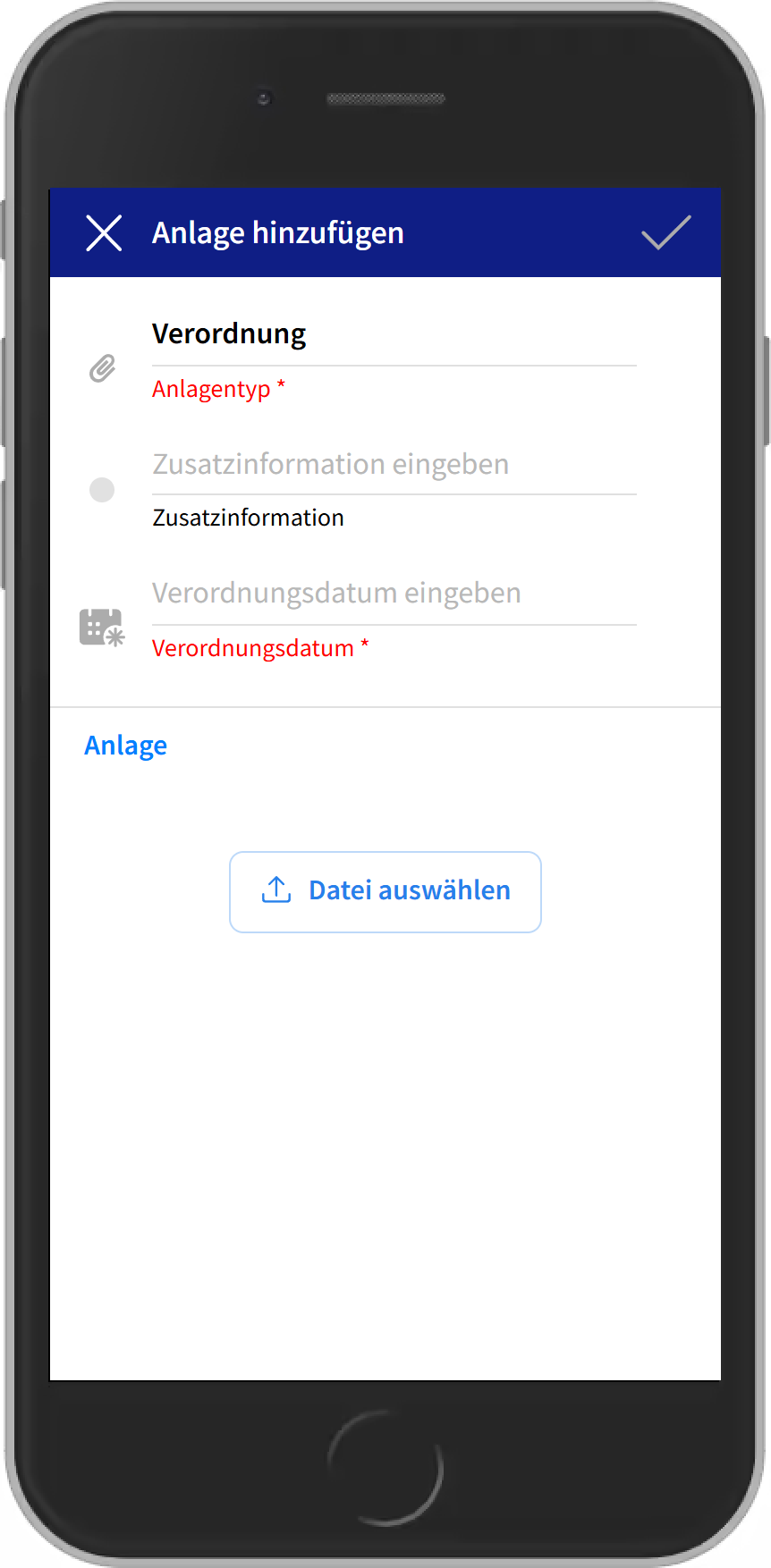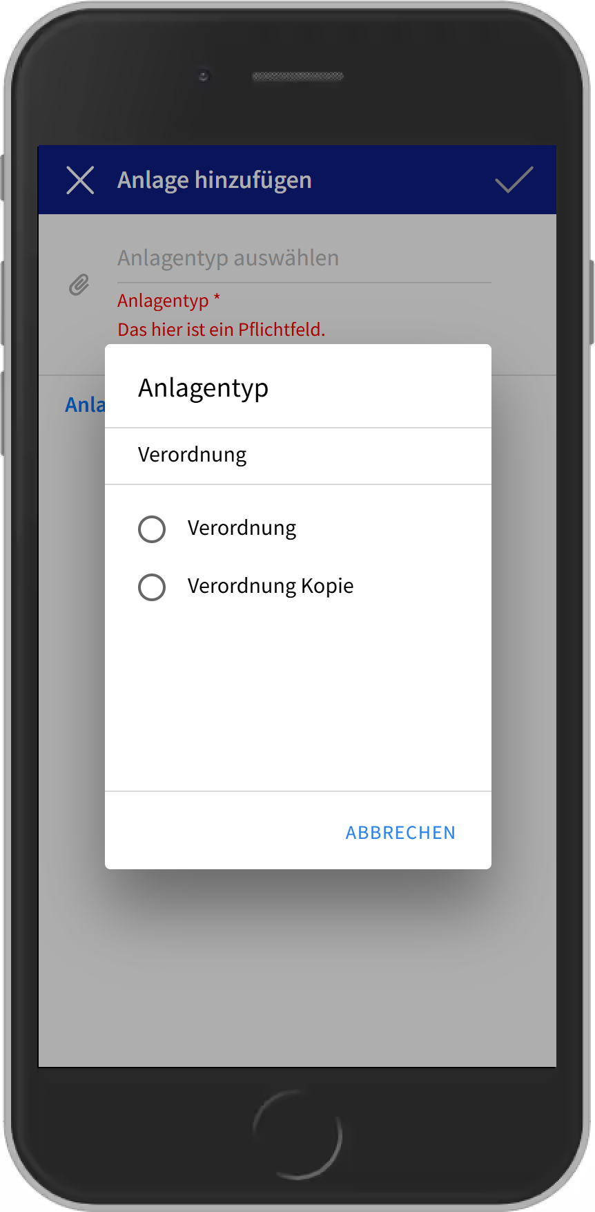 - Wird in Alberta an einem Leistungsauftrag eine Anlage (Verordnung Kopie/Verordnung Original) hochgeladen, muss das Verordnungsdatum angegeben werden.