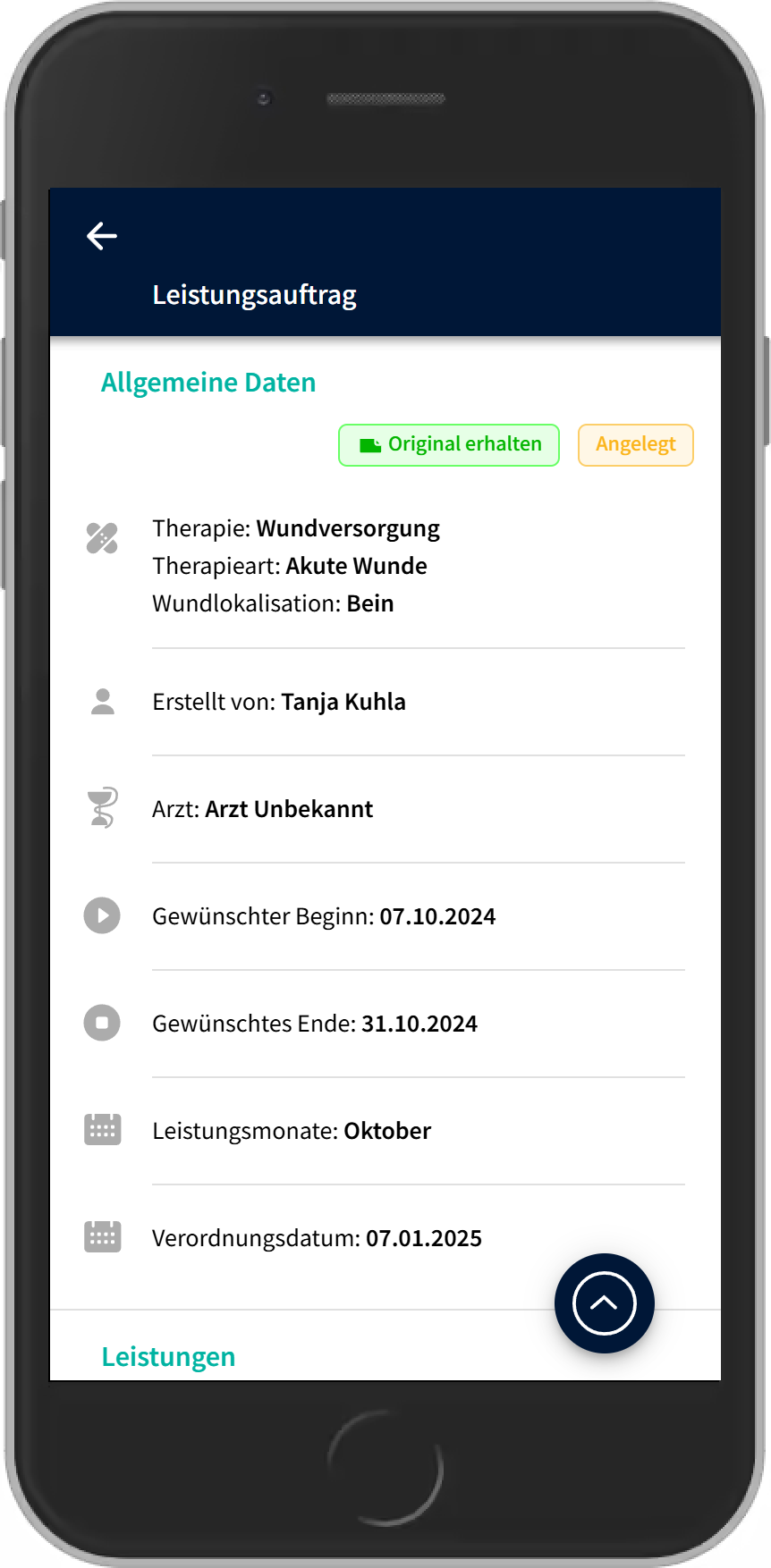 - Dieses wird auch in der Detailansicht des Leistungsauftrags angezeigt.