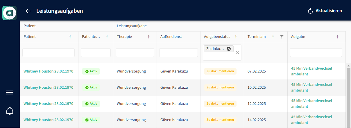 • Damit UserInnen besser auswerten können, welche Aufgaben noch zu dokumentieren sind, können die Aufgaben nun auch nach Termin gefiltert werden.