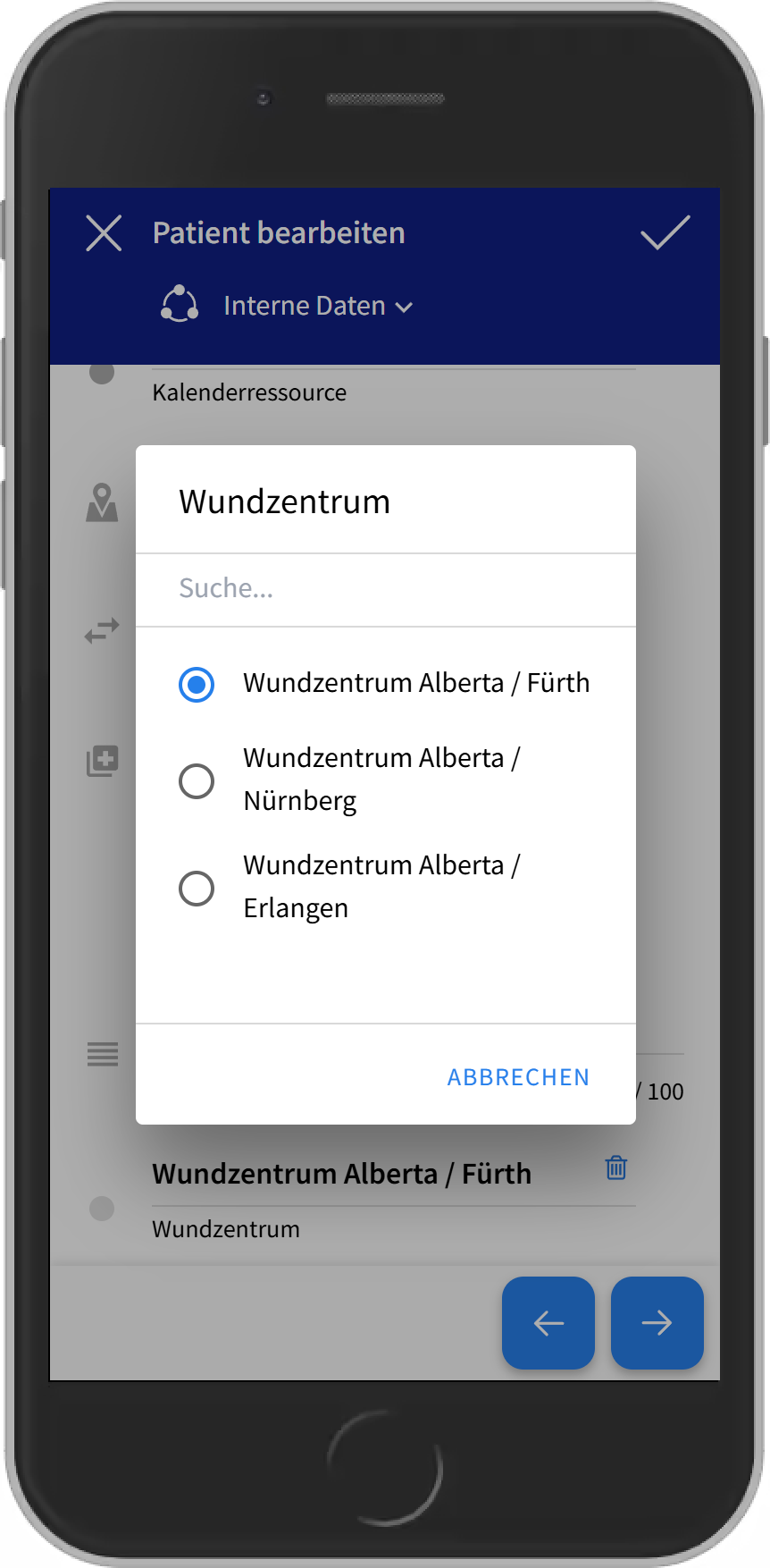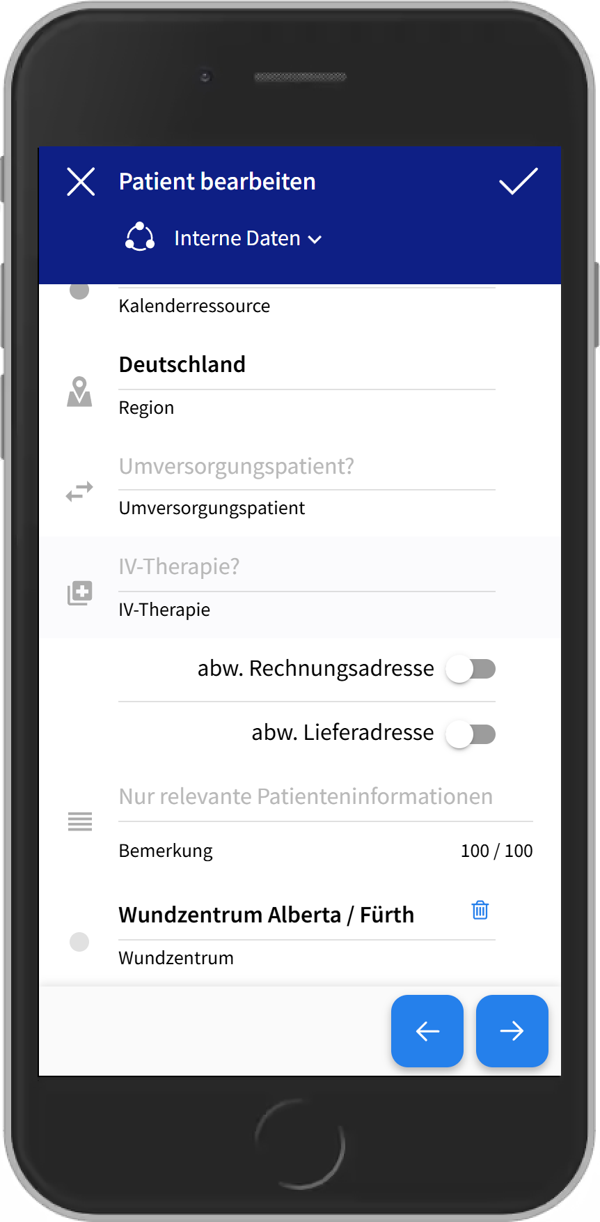 • Beim Anlegen/Bearbeiten eines Patienten muss nun das Wundzentrum in den "Internen Daten" angegeben werden.