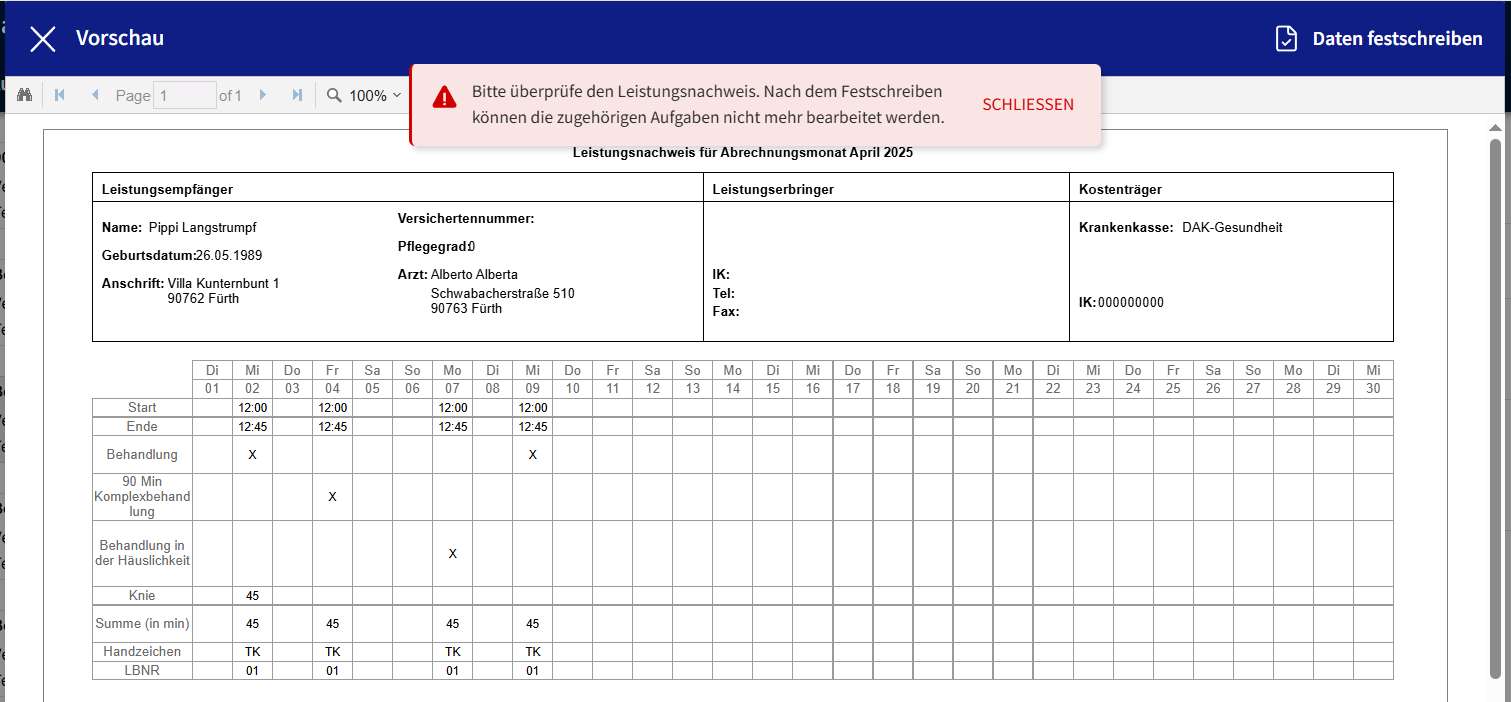 - Wird in Alberta ein Leistungsnachweis (LNW) aus den dokumentierten Aufgaben erstellt, wird nun im LNW pro erhaltener Leistungsart eine Zeile eingefügt.