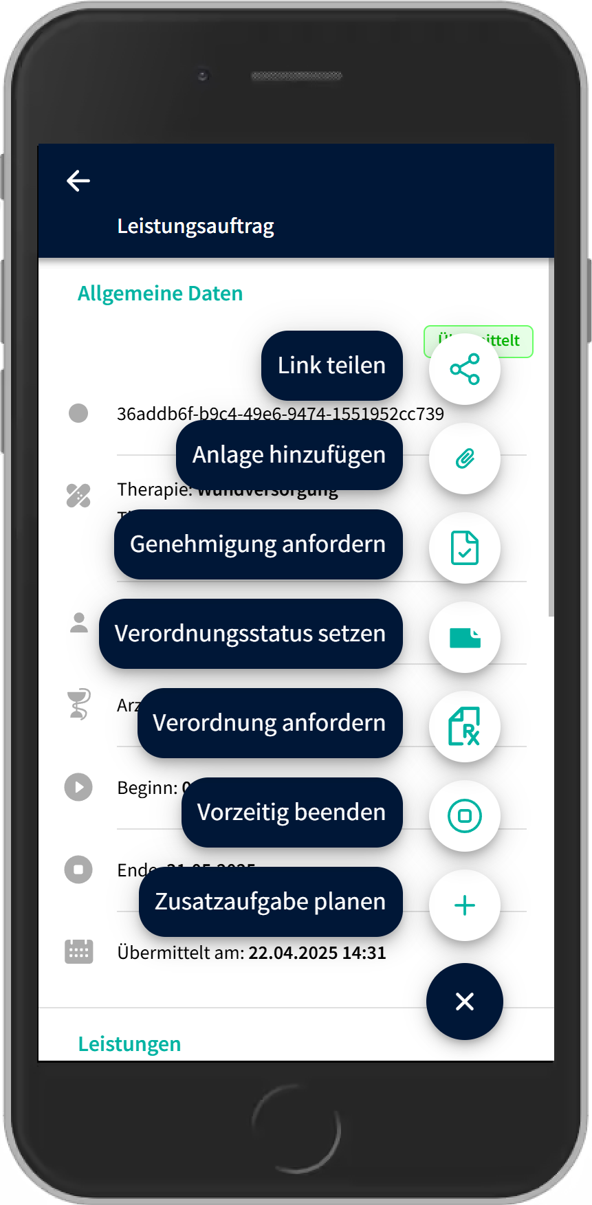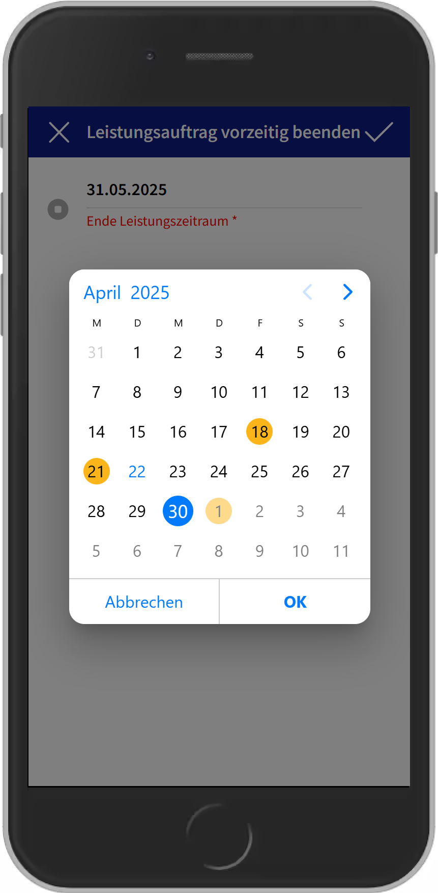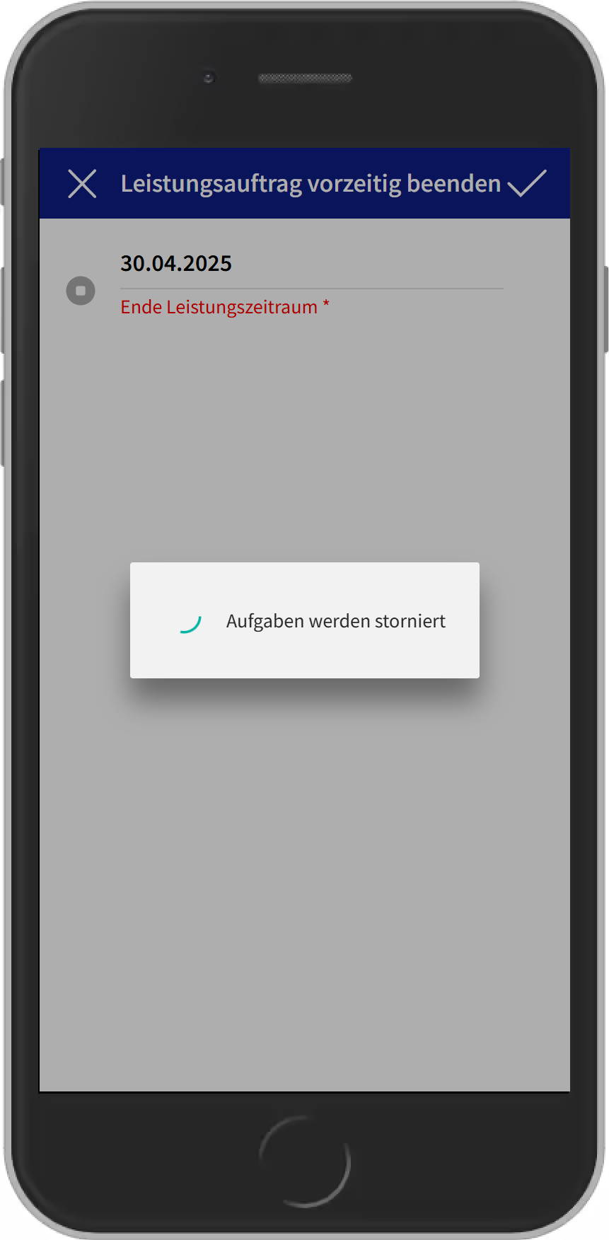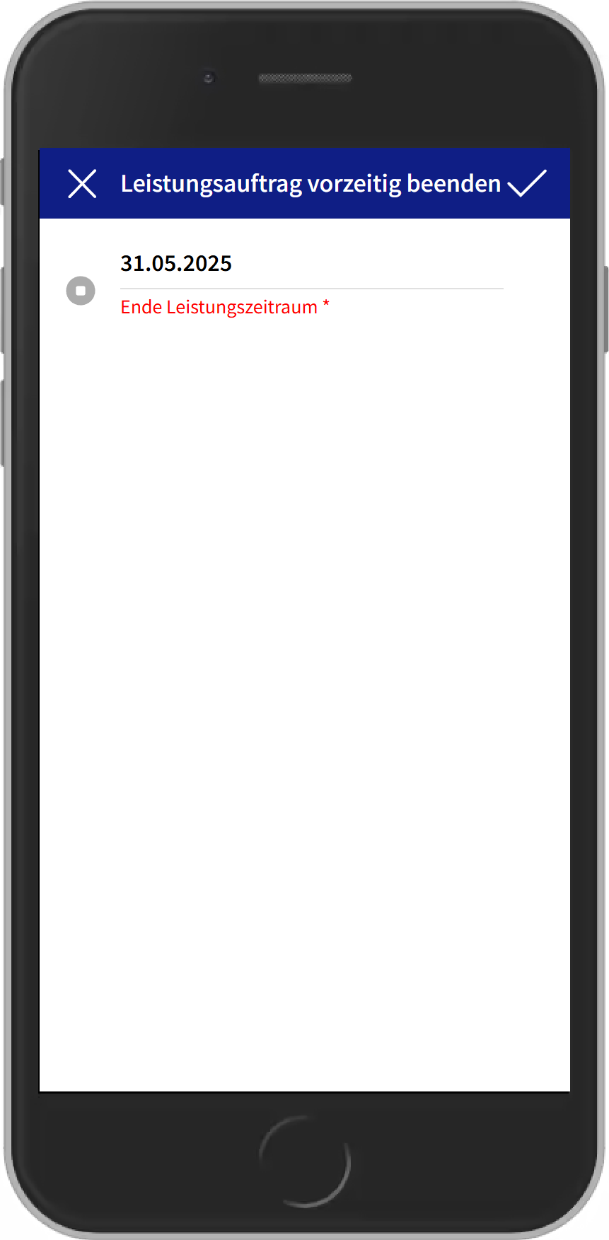 - Für den Anwendungsfall, dass ein Leistungsauftrag frühzeitig beendet werden muss, haben wir nun die Aktion "Vorzeitig beenden" in der Detailansicht eines Leistungsauftrags.