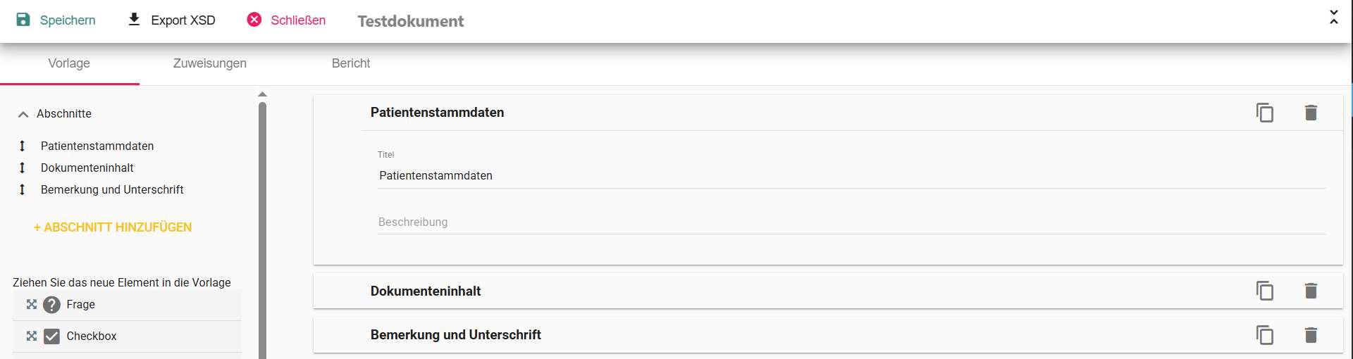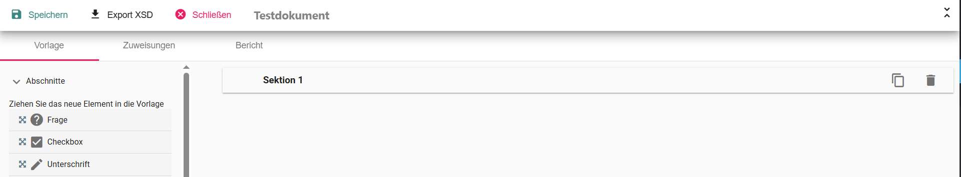 - Export XSD: Das XML-Schema der Vorlage kann exportiert werden (normalerweise nicht relevant)