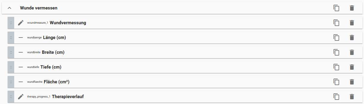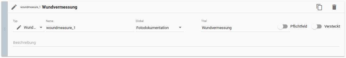 - Das Element "Wundvermessung" verwenden (Titel = "Wundvermessung" und Auswahl "Fotodokumentation" bei Global)