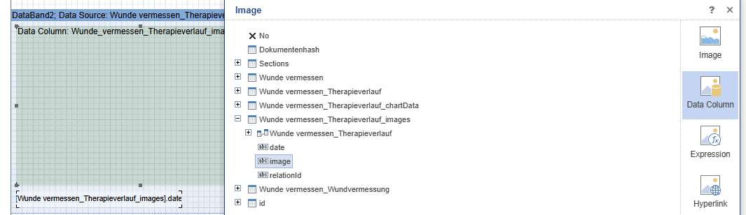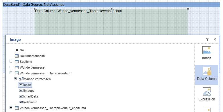 - Band mit der Data Source "Therapieverlauf_images" verknüpfen