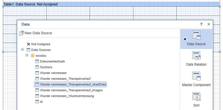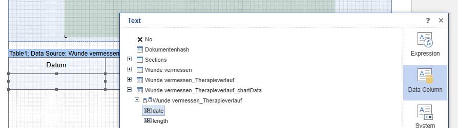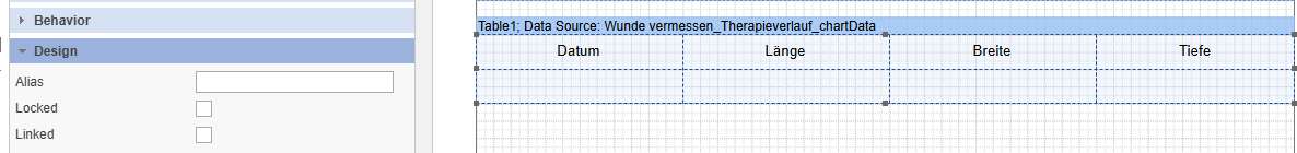 - Tabelle mit der Data Source "Therapieverlauf_chartData" verknüpfen