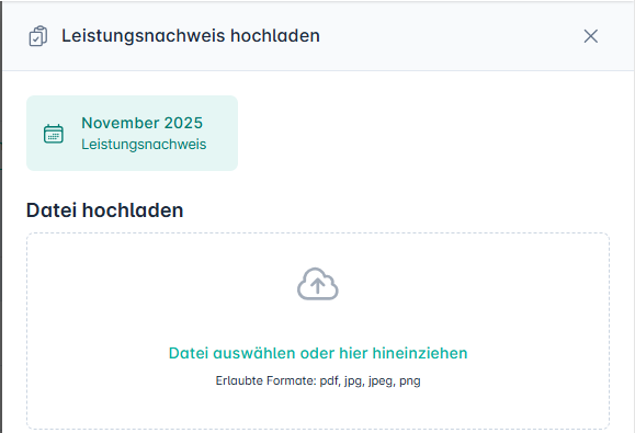 Leistungsnachweise hochladen: Der Dialog zeigt Ihnen sofort den entsprechenden Abrechnungsmonat an.