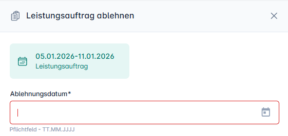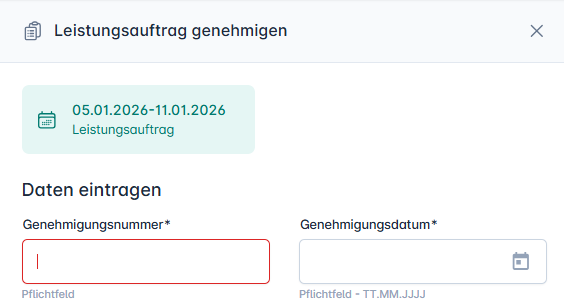 Leistungsaufträge genehmigen/ablehnen: Hier wird Ihnen nun der Gültigkeitszeitraum (Von-Bis-Datum) des Auftrags direkt angezeigt.