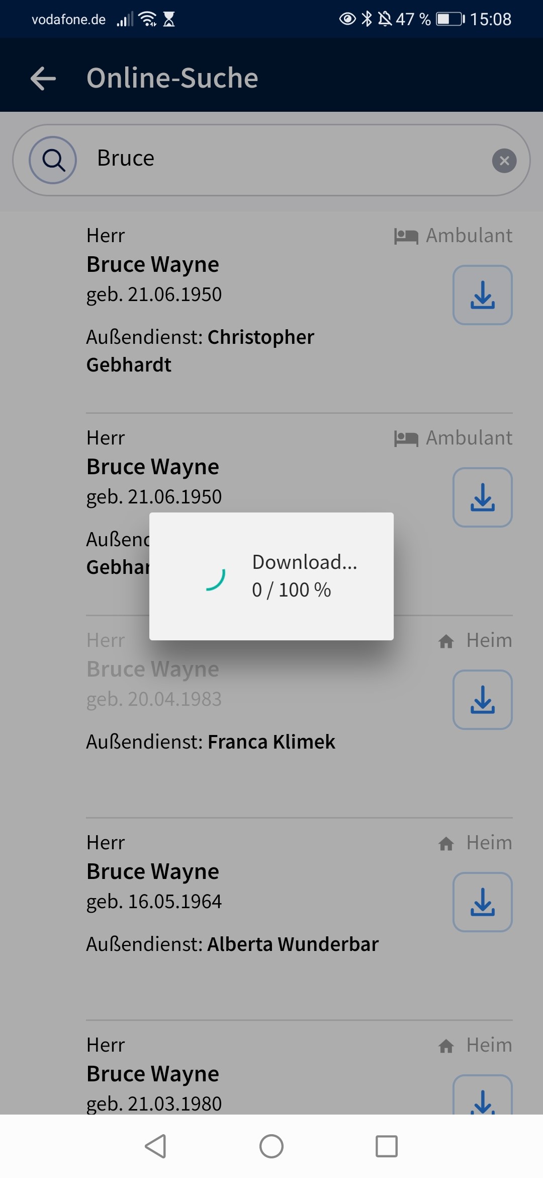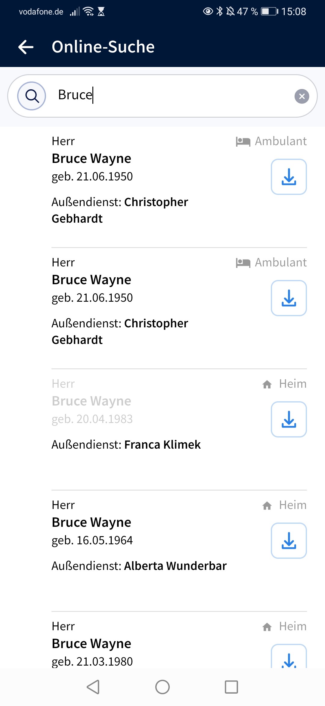 - Hast du den entsprechenden Patienten gefunden, klickst du auf das Download-Symbol, dann beginnt der Download der Patientendaten