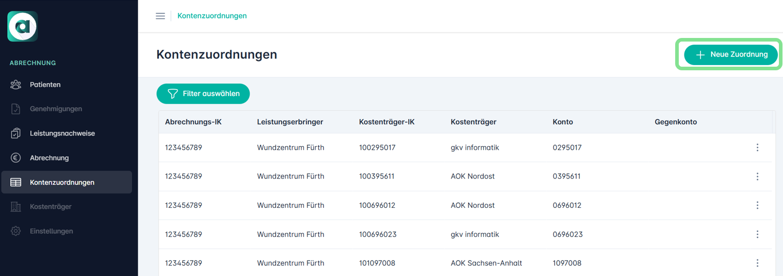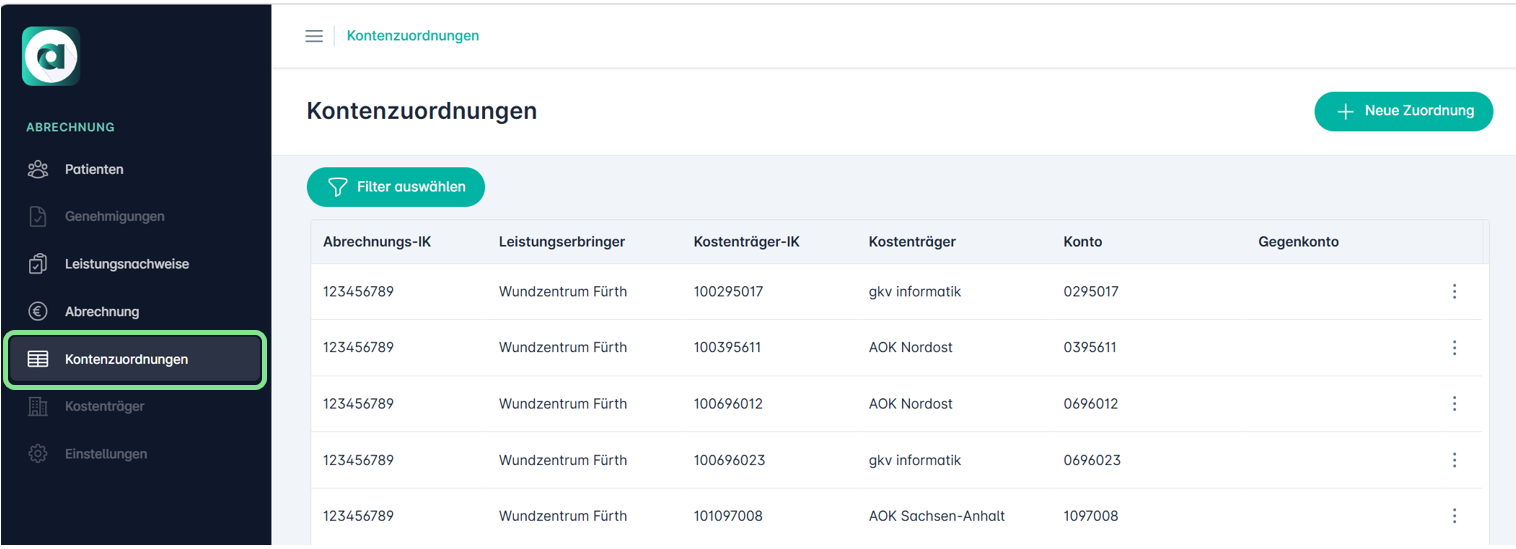 Um Kontenzuordnungen von einer Krankenkasse hinzuzufügen, sind folgende Schritte erforderlich: