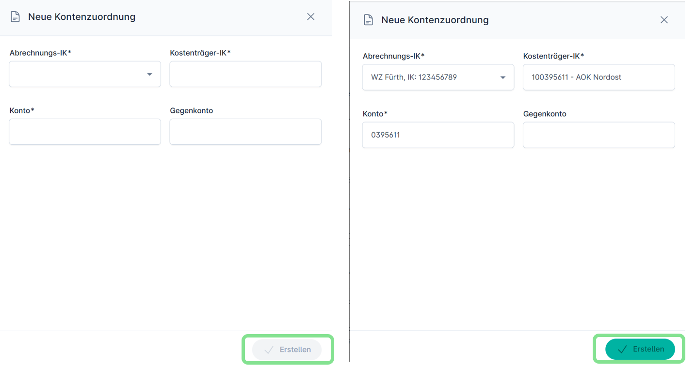 Neue Kontenzuordnung erstellen