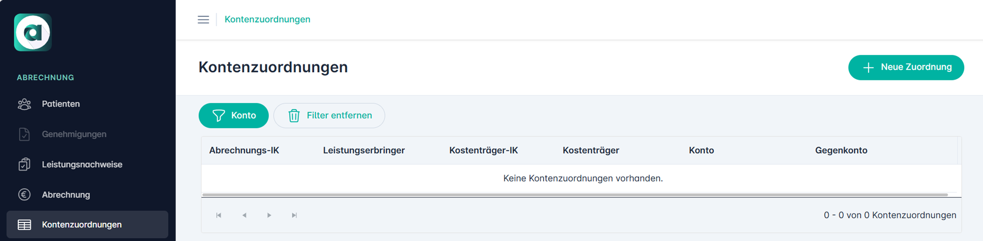 Für die Nutzung dieser Funktion wurde bewusst kein neues Recht geschaffen. Alle Mitarbeiter, die bereits heute Zugriff auf den Bereich „Abrechnung“ im Alberta Portal haben, erhalten automatisch Zugriff auf den neuen Menüpunkt „Kontenzuordnungen“.