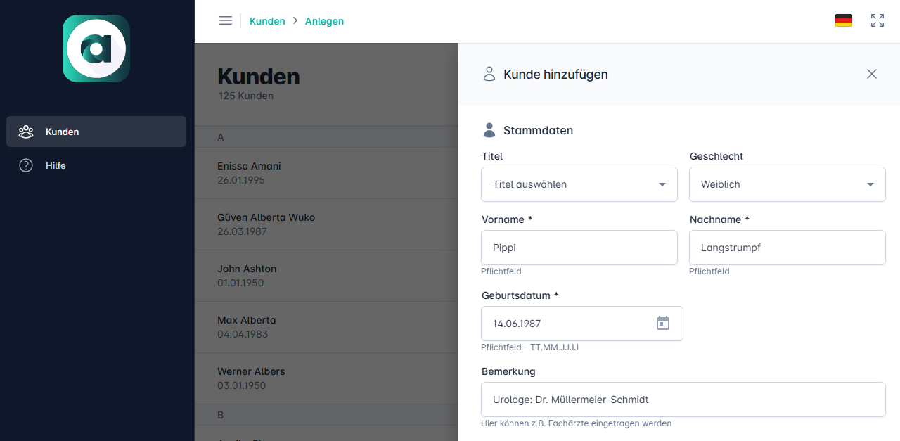 - Vor- und Nachname: Es muss mindestens der Nachname angegeben werden