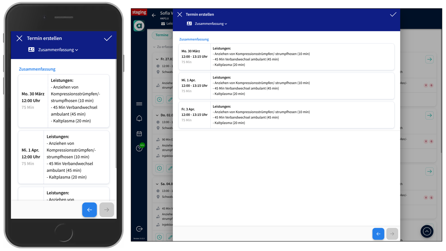- Überprüfen Sie alle Angaben: Datum, Uhrzeit, Dauer und Leistungen.