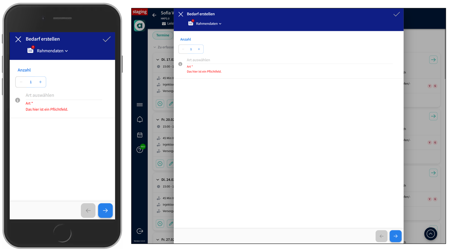 - Klicken Sie im Tab 'Termine' auf den FAB-Button > 'Bedarf erstellen'.